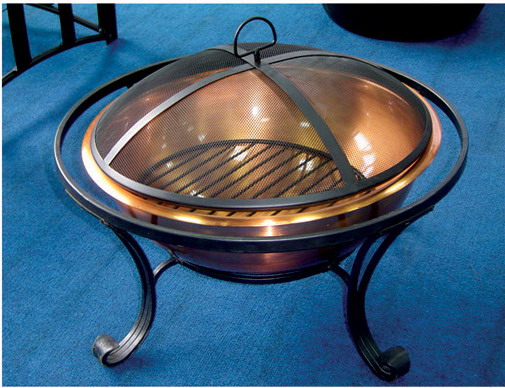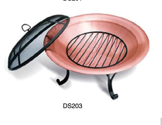 ![]() | Backyard portable fire pit DS203 * Big polished copper fire bowl (D28") lets you enjoy a campfire in the backyard * Bowl sits safely in a black metal stand which is powder coating * Sturdy mesh screen top to keep sparks and drifting pieces in * Top easily removes using the included lifting tool * Portable enough (20lbs) to take to bench or on a picnic | |||||
