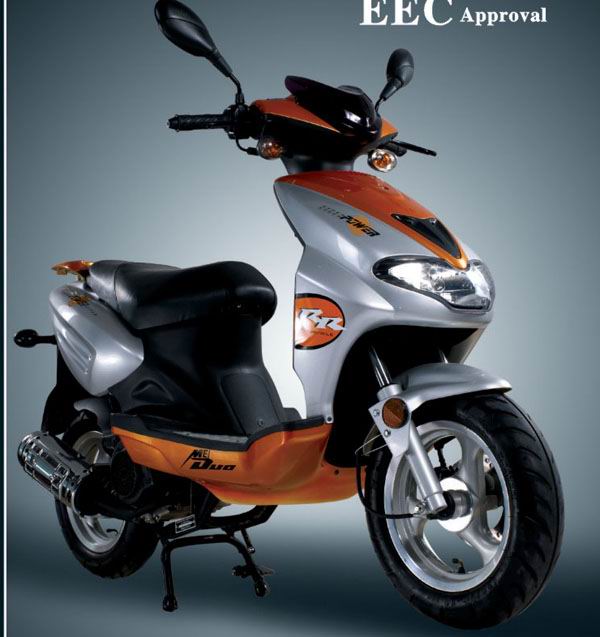![]() | 50QT-9(BO8) 50QT-9(BO8) L×W×L (mm):1830×570×1180 WHEEL BASE (mm):1300 MAX LOADING (kg):130 DRY WEIGHT (kg):85 DISPLACEMENT (ml):49.5 MAX POWER: kw/(r/min)2.2/7500 MAX TORQUE: n.m/ (r/min)3.0/6000 MAX SPEED (km/h):50 BRAKES:Front:Disk Rear:Drum LGNITION SYSTEM:CDI START:Electric/Kick FUEL TANK CAPACITY:6L | |||||
