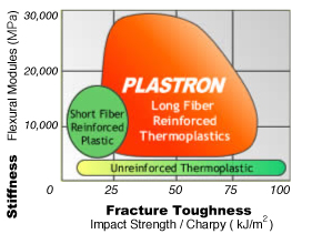 ![]() | Long Fiber Reinforced Thermoplastics PLASTRON PLASTRON materials provide both stiffness and toughness simultaneously with no trade-offs. Neither short fiber reinforced (SFRTP) nor unreinforced thermoplastics can match this performance combination. A unique and proprietary manufacturing process allows fiber concentration up to 60 percent of the total weight of the material. PLASTRON grades perform the very high mechanical properties and also are easy processed with its high flow and enable the material change from the metals, FRP to support your design innovation. PLASTRON has the wider grade range and provides you the best material solution. Structural Both stiffness and toughness can be balanced with many mechanical performance using Glass and Carbon Fiber also. Electrical High-grade Stainless Filament provides excellent semi-conductivity and EMI shielding performance. Also PLASTRON can be colored unlikely Carbon or Carbon Fiber filled materials. (depends on color ) Special & Custom grade PLASTRON can be possibly customized upon your request, e.g. adding special U.V. additive or Heat stabilizer, different pellet size, special combination of a matrix polymer and fiber. | |||||