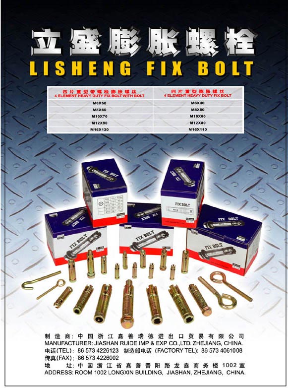 | bolt We are Jiashan Ruide Imp&Exp co.LTD which is in Jiashan of Zhejiang province in China.We are interested in exporting vatious kinds of metal production such as construction hardware,welding electrode,stainless steel production.We can supply the best quality with cheap price.If you want to know more about our company and the product ,you can add my .Don’t hesitate to contact us! | ||||||