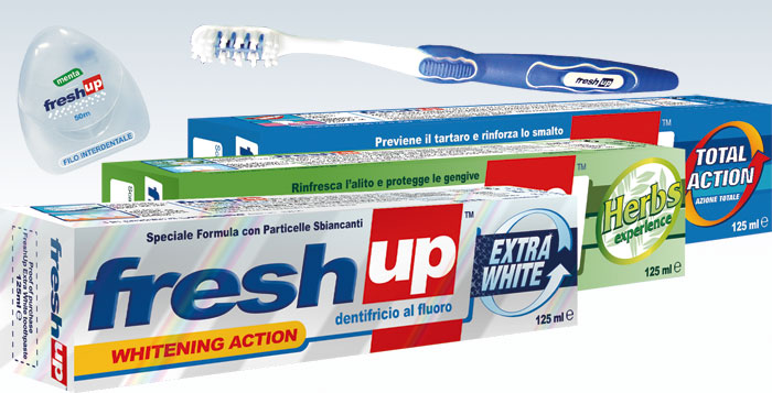 ![]() | FRESH UP ITALIA TOOTHPASTE, TOOTHBRUSH, DENTAL FLOSS, MOUTHWASH, WHITENING STRIPS | |||||