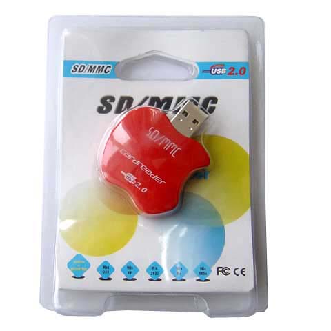 ![]() | SD/MMC Card Reader (apple) Description: USB2.0 8-in-1 card reader/writer , can reader/writer SD , SD-ultra , SDC , MMC, HS-MMC, RS-MMC, MINI SD, T-FLASH cards Features: -8 in 1 Card Reader/Writer -USB2.0 transfer rate to 480 Mbps, backward USB1.1 transfer rate up to 12 Mbps. -No external power required, just powered by USB connection cable. -2LED,1LED indicator to indicate CARD READER access,1 LED power. -Fully Plug & Play and Hot swapping support. -Lower power consumption. -Color: Red, black, white Specification: -All in 1 design, 1 memory card slots supporting 8 digital memory cards listed below: -Slot: SD , SD-ultra , SDC , MMC, HS-MMC, RS-MMC, MINI SD, T-FLASH -Support Windows Me/2000/XP and Mac OS X without USB device driver. -Support Windows 98SE with USB device driver. -Power supply:DC+5 volts supplied by USB port. -Operation temperature: 0'C to 70'C -Durability: 10,000 cycles of insertion/removal Note: To MINI SD, T-FLASH cards, CARD ADAPTER is needed | |||||