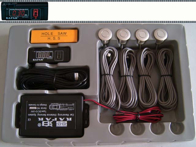 ![]() | Car Parking Sensor with LED Display DP-40 This car parking sensor kit consists of a LED color Display, a control unit and sensors, the control unit gets its power from the reverse light source. The system uses ultrasonic distance measurements to detect distance between the vehicle rear and obstacles. The systems will display the distance in meters and beep with the beeping getting faster as you get closer to the obstacle. How it works: The rear ultrasonic sensors transmit a "narrow beam" signal. When this signal strikes a solid target directly in the path of the host vehicle, it bounce back to the receiver(same sensors as transmitting). The signals are then sent to and processed by microcomputer and shown on the display. Main Feature: Automatically activate when engaging reverse gear. LED displays the distance in division of a metre and Display indicates Left/Right and 3 color 7 segment intelligent display. Audible warning sound of "BiBi", faster as you get closer to obstacle. Sound switch on/off if you don't want to hear the "BiBi". 2, 3, 4 sensors optional. Any color of sensor is available. Technical Specification: Operating voltage: 12Vą2V Operating current: <160mA Operating temperature: -40℃∽+80℃ Detecting range: 0.3→3.0m | |||||