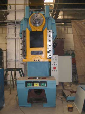 ![]() | Eccentric press LE 400 C Pracovní rozsah Jmenovitá tvářecí síla: 4000 kN Sevření 470 mm Vyložení 450 mm STŮL Upínací plocha: 1250x900 mm Tlouštka stolní desky: 140 mm BERAN přestavitelnost: 120 mm Zdvih beranu: 30-160 mm Počet využitelných zdvihů: 20 1/min Počet zdvihů při trvalém chodu: 40 1/min Spotřeba vzduchu na zdvih: 30 litratm/hod Pracovní tlak: 6 atp Výkon elektromotoru: 28 KW STROJ ROZMĚRY Délka: 2900 mm Šířka: 1600 mm Výška: 3350 mm Hmotnost: 22000 kg | |||||