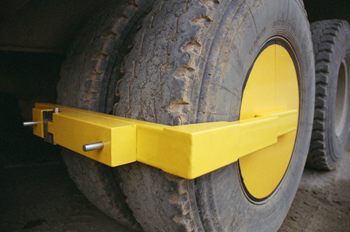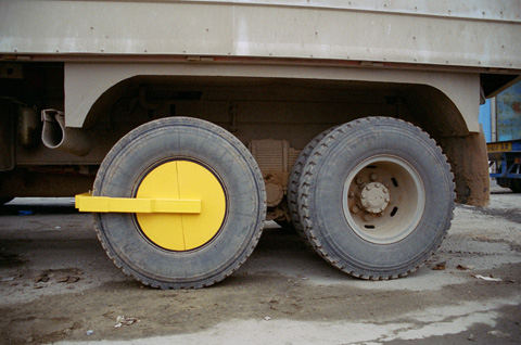 ![]() | STD Double-wheel clamp immobilizer (Wheel Lock) STD-98LA-2 STD98LA-2 double-wheel lock is a specialized lock designed by our company for double wheels in parallel of heavy-duty truck, trailers or container trucks. Product Features: Wheel lock itself, carefully taken into consideration of double-wheel cylinder structure of heavy-duty vehicles, is made of 5mm thickness and 560mm diameter mold steel with screw positioning device, which enables it to firmly lock heavy-duty trailers, construction trucks, container trucks, and big buses etc. ...Wheel lock itself, weighed 20kg, is finely made of 5mm thickness high quality steel plate and 400mm×800mm×3mm rectangle steel with a careful consideration of the tire features of heavy-duty vehicles can lock wheels with a cylinder diameter range of 500mm to 560mm. This product applies to heavy-duty trailers, construction trucks, container trucks, and big buses with double wheels in parallel. It is easy to operate. Within 60 seconds, a heavy-duty truck can be firmly lock by cooperating with two persons. | |||||