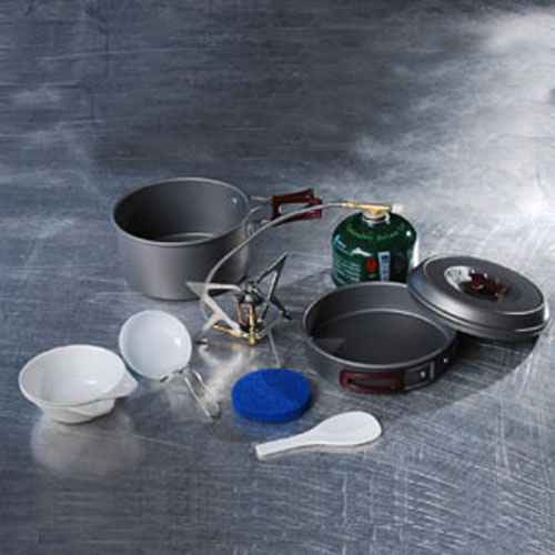 ![]() | Cooking Set CS200-C6 Parameter: Suits two person to use. A frying pan, a big boliler, a spoon, a scoop, Two bowls and a cleaning cloth, a seperative gas stove included. The boiler is made up with high quality aluminium stuff which is Oxdized by high-class hard aluminum and can resist high temperatire And friction. The stove copper alloy and stainless steel stuff. The spoon PP stuff. The bowl and scopper melamine stuff. Packed by sack. Frying pan specs: 177x39mm Caldron specs: 173x102mm Portable stove specs: 86x32x94mm N/W: 730g | |||||