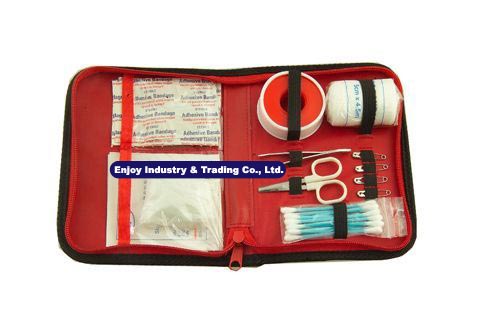 ![]() | First Aid Kit FAK10 Description:First Aid Kit Bag material:70D nylon size:17x13x2.5cm parts: Adhesive Bandage1.9x7cm 20pcs Gauze Pad2"x2" 3pcs Elastic Bandage7.5cmX4m 1pcs Bandage Scissors 1pcs Cotton-Buds 8cm 10pcs Safty Pins 4pcs Adhesive Plaster 1.25x5m 1roll Tweesers 1pcs Disposable Gloves PVC "L" 2pcs | |||||
