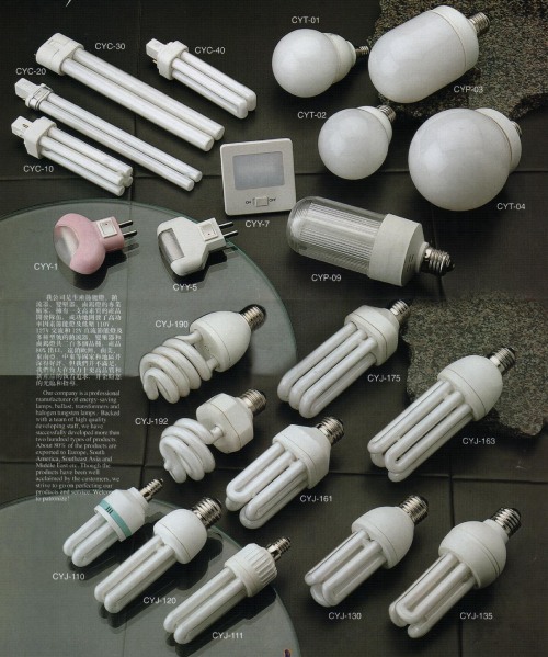 ![]() | Energy Saving Lamp to be advise Nowadays energy saving lamps are not only used in most household but also for commercial illumination too. Its features are 1/5 energy power consumption of normal incandescent light bulb, less heat generated on lamp's itself and better lifespan than the incandescent light bulb can do if the lamps are make by reputable factories. Today, more powerful energy saving lamps are being created for commercial illumination purposes. Our factory devoted into the energy saving lamp industry for producing various quality energy saving lamps with different lifespan as 3000 hours , 6000 hours and 8000 hours. We offer you a wide range of selection as U/H, 2U, 3U, 4U, 5U, spiral, spheral & radial types, etc. Lamp power defined from 3W ~ 100W. We use superior material, pure tricolor tube and imported components, integrate with advanced technology SMD to minimize unexpected human error. Strictly quality control system ensures that all parts of processes are carried out precise actions to ensure production in perfect performance. OEM products are available. Details please visit our listing or contact us. Login to get quotes instantly. | |||||