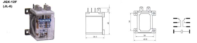 ![]() | Power Relay JQX-12F (JL-6) Weight: ≤130g Contact Capacity: 20A 250VAC / 30A 250VDC Coil Nominal Voltage: DC 6V to 220V / AC 6V to 380V Coil Nominal Power: DC≤2.5W / AC≤4.0VA Insulation Resistance: ≥500MΩ Contact Resistance: ≤50mΩ Dielectric Strength: BOC 1500VAC / BCC 1500VAC Lift Expecatncy(ops) Electrical Mechanical: Ele 100,000 / Me 10,000,000 Operating Termperature: -40℃ to 60℃ | |||||