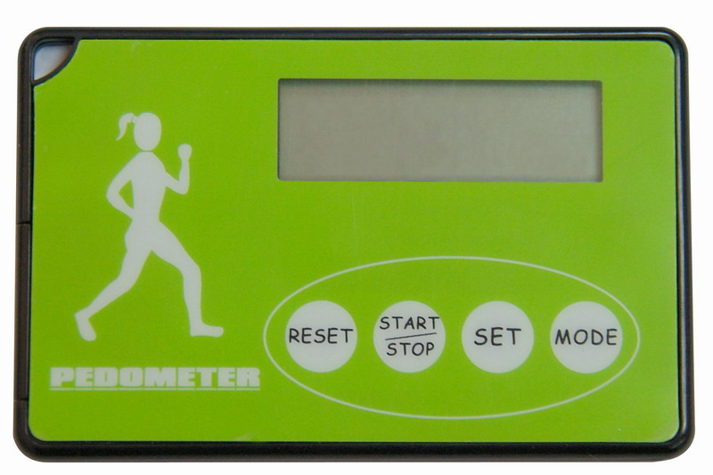 | M339A Credit-card pedometer M339A 1) Size: 9.6 x 5.5x 0.4cm 2) LCD clock function in 12/24 hr 3) Stopwatch 4) Counts to 699999 steps 5) Personal stride and weight(20kg-150kg) 30-200cm) input to calculate the walked distance and consumed calories(Kcas 0-699999) 6) Superthin and applies to any direction 7) Power:1.5V DC AG8 *1 pcs | ||||||