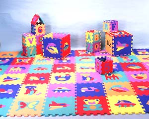 ![]() | EVA Floor Puzzle Mat 5070D, A, N Specifications/Features: 1. 5070A: 26 alphabets 2. 5070D: 26 drawings 3. 5070N: 10 numbers 4. All models also can be packed in PVC carry bag 5. Interlocking portable, lightweight, wound proof, shock-absorbing, durable and colorful 6. Suitable for outdoors and indoors, babies rooms, playgrounds, etc 7. Size: 30 x 30 x 1cm 8. Material: EVA foam | |||||