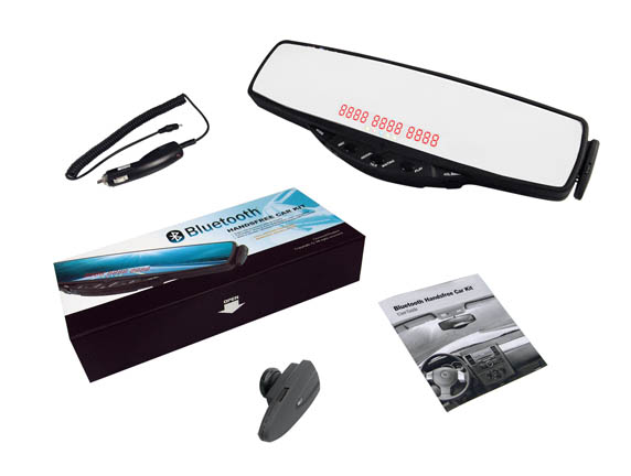 ![]() | bluetooth handfree car kit with parking sensor BCT-02 *Item No:BCT-002 *Bluetooth 2.0+EDR, compatible with ALL bluetooth enabled mobile phones *Caller ID indicate with large LED lights Voice dial and last number redial *Noise suppression and echo cancelation technology *AVRCP profile integrated, control the audio playback when used with Bluetooth USB dongle *Built-in microphone and built-in dual stereo louderspeaker *Built-in FM frequency transmitter connect to your car stereo *Universal audio input for audio devices, such as iPods, MP3, MP4 to enjoy wireless stereo listening *Stereo earphone provided for total private conversation. FM earpiece is available *Wireless parking sensor system is available Easy installation, the mirror simply clips over the top of your existing mirror | |||||