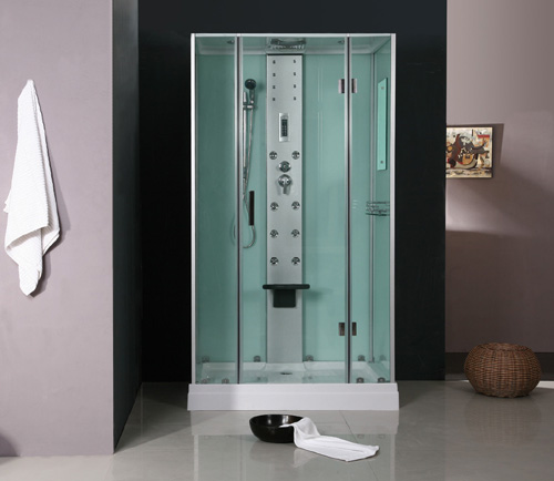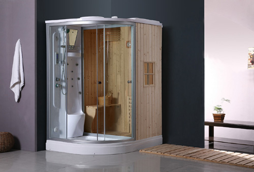 ![]() | Sauna Room XH-1015 SIZE:1600×1200×2150mm Damp steam part: Gh CONTROL SYSTEM,STEAMER POWER:2.8kw, annular dome light,chrome tap,lift faucet, sunflower top sprayer,silver A-alloy frame, 6mm tempered glass,pure copper three-layer shelf. Dry steam part: Finnish sauna board,3KW sauna dry steam boiler, archaistic wooden barrel,wooden scoop,sandglass timer, thermometer and hygrometer,flame-proof lamp, 6mm tempered glass,fixed type sauna stool, high-grade treadle. Main functions: Dry steam sauna,needle massage,shower faucet, top sprayer,FMradio. | |||||