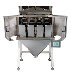 ![]() | JWAX-4 4 Head Linear Weigher JWAX-4 Ⅰ Application: It’s suitable for weighing slice, roll or regular shape products such as sugar, salt, seed, rice, sesame, glutamate, milk powder, coffee and seasoning powder, etc. Ⅱ Special Features: It’s able to mix-weigh different materials at one discharge; ﹡ Adopt no-grade vibrating feeding system which makes products feeding smoothly; ﹡ Easy program setup, friendly operation; ﹡ Remote Internet control; Ⅲ General Features: Adopt high precision digital load cell to get precise weighing; ﹡ Stable PLC control system; ﹡ Friendly touching screen; ﹡ 304# stainless steel construction; ﹡ Multilanguage operation; ﹡ Easy maintenance due to dismountable hopper and funnel; ﹡ IP65 waterproof and dustproof design; Ⅳ Specification | |||||