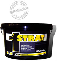 ![]() | DEKO 1 STRAT - INTERIOR PAINT 000169 DESCRIPTION: paint based on watery dispersions of acryl-styrene copolymers, pigments, fillers and additives, designed for interior painting BENEFITS: High degree of white (min. 92) Great hiding power in one single layer Dries fast Smooth, sound and long-lasting coating Saving time and labor costs MAIN CHARACTERISTICS: NUMBER OF LAYERS 1 APPLICATION METHOD by roller and brush HIDING POWER up to 10 m2/L CONSUMPTION up to 162 g/m2 DRYING TIME 2 hours at 23°C PACKAGING plastic pails of 25 Kg and 40 Kg | |||||