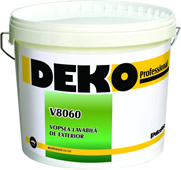 ![]() | DEKOV860 - EXTERIOR PAINT 0005896 DESCRIPTION: Water-borne paint based on acryl-styrene copolymers for exterior surfaces. BENEFITS: Good washability Big hiding power Good resistance to dirt Excellent resistance to bad weather, solar radiation, freezing temperature, humidity Good adhesion to absorbent and non-absorbent substrates Fast drying Resistance to wearing MAIN CHARACTERISTICS: NUMBER OF LAYERS 2 APPLICATION METHODS roller, brush, air spraying CONSUMPTION 12 m2/L/layer DRYING TIME min. 2 hours at 20°C PACKGING polyethylene or polypropylene pails 4 L, 8.5 L, 16 L (24 kg), 40 L (60 kg). | |||||