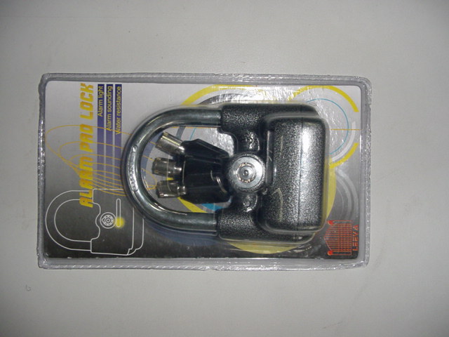 | alarm motorcycle lock SNC808 Item No.:SNC808 Key Features: Alarm specs: .Auto-alarming system, locking system can be used armed or unarmed .Removable Alarm Module .Dual Shock & Movement Sensors .120 db alarm loudness .Waterproof, resistant against salt and hard weather Lock specs: .Hot processed, hardened steel shackle. .Hardened stainless steel body, chrome finish. .Resiliant bumper prevents scratching. .High level security .Dimension: 8x7x3.5cm .The shackle diameter: 6mm Key specs: .2 High-Security Key and Barrel Battery specs: .6 button batteries (digital watch style) .6 months battery life Packing specs: .The Carton size: 40x22.5x28cm .The Inner packing: Blister with card .The Outer packing: 24pcs/CTN Warning: BE SURE TO REMOVE LOCK BEFORE RIDING MOTORCYCLE.FAIURE TO DO SO MAY RESULT IN DAMAGE TO PROPERTY OR PERSONAL INJURY. | ||||||