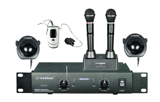 ![]() | Infrared Ray Wireless Microphone IR-III Infrared Ray Wireless Microphone IR microphone advoid the interferes when many VHF or UHF microphones used simultanceously in the certain distance and it is especial suitable for school teaching and KTV Both in the sound and the quality, it can bring you marvellous music. 1. Technical specifications (1) Frequency: 2.35MHz~2.85MHz (2) Deviation Range: +/-40KHz (3) S/N Ratio:>100dB (4) T.H.D: <0.5% (5) Frequency Response: 50Hz-15KHz+/-3dB (6) Channels :IR-1: Single channel IR-2: Dual channel (7) Receiver's frequency: 2.35MHz/2.85MHz (8) Output level: MIC: 240mv Circuit450mv (9) Power: 220V 50/60Hz (10) Dimesion:IR-1 W: 210 / H: 205 / T: 45mm IR-2 W: 420 / H: 205 / T: 45mm (11) Weight: IR-1: 1800g IR-2: 2150g 2. INFRARED RAY MICROPHONE'S SPECIFICATION (1) Polar pattern : Uni-directional dynamic (2) Transmission frequency:2.35~2.85MHz (3) Battery Typ: Erronickel and hydrogen batter,2.4v,2400mAH (4) Working time: About 6 hours (LO output)/4hours(HI output) (5) Dimension: head Ø50mm*L240mm (6) Weight (with battery): 280g 3. MICROPHONE BATTERY CHARGER (1) Charge method: Pluse charge (2) Power : AC220V. 50/60Hz (3) Charging power: DC 12V 300mA*2 (4) Charge time: 6 hours (5) Dimension:( w):145mm / (h)105mm / (d):65mm (6) Weight: 500g | |||||