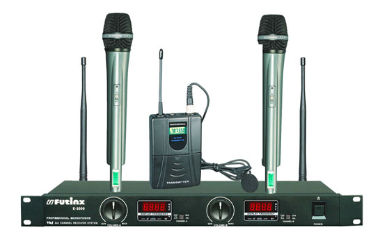 ![]() | wireless microphone E-9000-A Technical specifications ansmitter 1.Operating frequency:720-880MHz 2.Adopt CPU control 3.With PLL combined technology 4.With 32 channels for free selection and LED display 5equency stability :+/-0.002% 6.With FM max frequency adjusting: +/-45KHz 7.Pre-warning display for weak battery 8.Audio frequency response compression and auto electricity level circuit Receiver 1.Operating frequency: 720-880MHz 2.Adopt CPU control 3.With PLL combined technology 4.With 32 channels for free selection and LED display 5equency stability: +/-0.002% 6.Noise locked +Pilot tone locked 7.Audio frequency response expand and auto electricity level control circuit 8ue diversity receiver | |||||