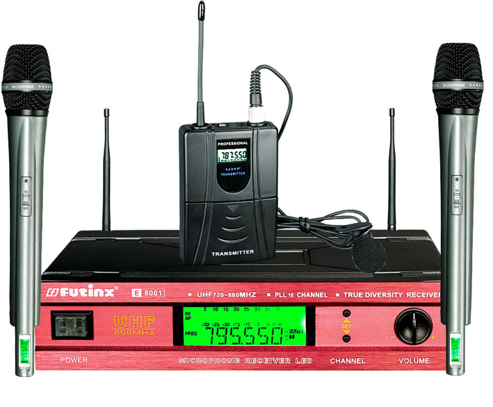 ![]() | Wireless microphone E-8001 Technical specifications Transmitter 1.Operating frequency:720-880MHz 2.Adopt CPU control 3.With PLL combined technology 4.With 32 channels for free selection and LED display 5equency stability :+/-0.002% 6.With FM max frequency adjusting: +/-45KHz 7.Pre-warning display for weak battery 8.Audio frequency response compression and auto electricity level circuit Receiver 1.Operating frequency: 720-880MHz 2.Adopt CPU control 3.With PLL combined technology 4.With 32 channels for free selection and LED display 5equency stability: +/-0.002% 6.Noise locked +Pilot tone locked 7.Audio frequency response expand and auto electricity level control circuit 8ue diversity receiver | |||||