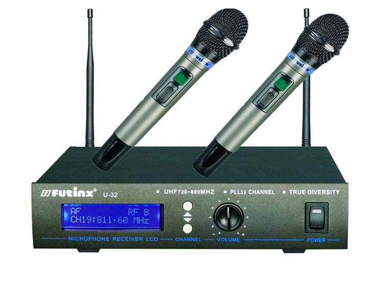 ![]() | Wireless microphone U-32 Technical specifications Transmitter 1.Operating frequency:720-880MHz 2.Adopt CPU control 3.With PLL combined technology 4.With 32 channels for free selection and LED display 5equency stability :+/-0.002% 6.With FM max frequency adjusting: +/-45KHz 7.Pre-warning display for weak battery 8.Audio frequency response compression and auto electricity level circuit Receiver 1.Operating frequency: 720-880MHz 2.Adopt CPU control 3.With PLL combined technology 4.With 32 channels for free selection and LED display 5equency stability: +/-0.002% 6.Noise locked +Pilot tone locked 7.Audio frequency response expand and auto electricity level control circuit 8ue diversity receiver | |||||