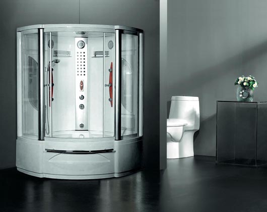 ![]() | steam bathroom JJ901 JJ901 Size: 1380X1380X2150mm multifunction hand shower with adjustable bar three level mixer, big top shower and massage jets chrome easy clean waste shelf, mirror, foot massager top lamp mulifunction LCD computer control panel fan FM radio O3 CD connector 3KW steam generator | |||||