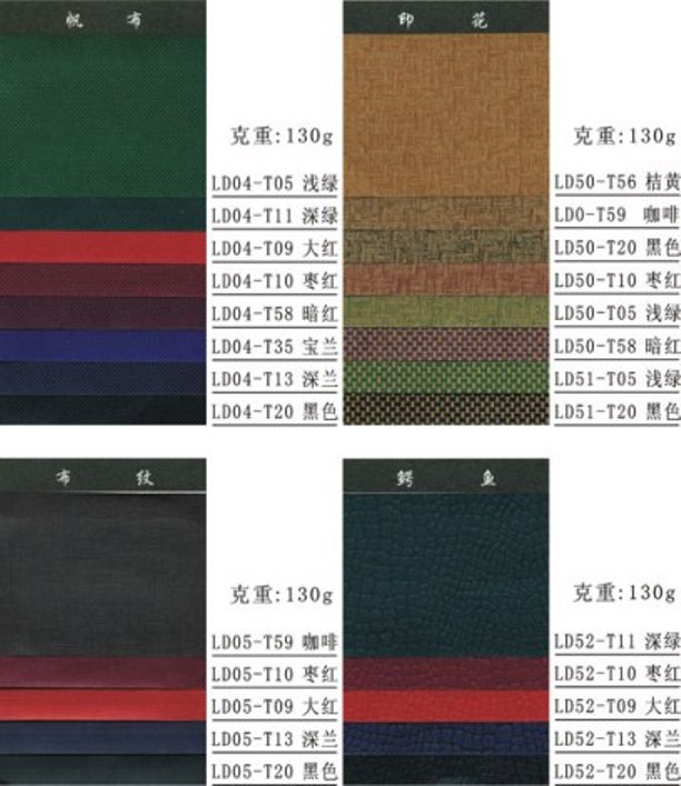 ![]() | Faux Leather Paper Faux Leather Paper: Features: 1) Gorgeous colors and embossed 2) Excellent moisture-resistant, abrasion resistant and folding endurance properties Specifications: 1) Sizes available: 787 x 1092mm or as per samples 2) Weight: 120,150gsm or other as per samples 3) We can provide competitive price, best quality and excellent service Packing: 250 sheets/pack Applications : gift wrapping, bookbinding, invitation cards, greeting cards, high-grade calendars, bankbooks, certification paper, packaging for wine and cosmetics, as well as other high-grade gift packaging purposes | |||||