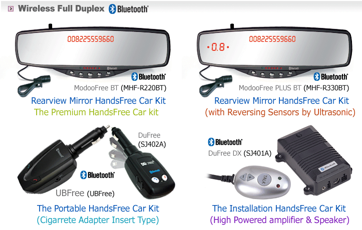 ![]() | Car Bluetooth products MHF-R220BT The Rearview Mirror HandsFree Car Kit (MHF-R220BT) is a wireless device that utilises the latest Bluetooth* technology to communicate with your compatible phone within a 10-metre range. This allows you to talk through its built-in high quality loudspeaker and external high sensitivity microphone without the need to hold the phone or take your hands off the steering wheel. | |||||
