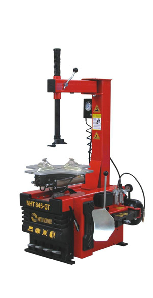 ![]() | tyre changer NHT 845-GT Semi-automatic tyre changer,suitable for 12"-23"stiff,wide and low-profile tyres,and also capable of handling 20"aulminum alloy rims. Unit integrated case Complete with air reserve tank Quick inflating Pneumatic bead breaker blade Vertical and horizontal arms with pneumatic dual locking device Water box in the case Technical data: Rim clamping from outside 12"-20" Rim clamping from inside 14"-23" Max. wheel diameter: 950mm Max. wheel width/turntable: 410mm Max. wheel width/bead- breaker: 260mm Bead-remover cylinder(force at 10 bar) 2500Kg Operating pressure 8-10bar(145Psi) Power supply 110/220V 1ph 380V 3ph Motor power 0.75-1.1Kw Net weight: 213Kg Noise <70dB Packing outside dimension: 1305×960×940 Accessories 1. Crowbar 1 2ush 1 3. Washer For Duck Head 1set 4.Protector For Clamp 8 5. Protector For Crowbarl 1 6.Metal Duck Head 1 7.Gun Inflator 1 8.Manual 1 9.Reverse Switch 1/5set 10.Protector For Shovel 1 | |||||