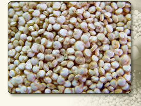 ![]() | Quinoa A member of the Chenopodium family and a cousin of amaranth. One of the ancient staple foods of the Incas, it was called "the mother grain." (Botanically, quinoa is not a true grain, but can bused as one.). Grown in South American Andes for thousands of years, and thrives in high, cold altitudes It has the highest protein content (since it has a protein profile similar to amaranth). It has more calcium than milk and is higher in fat content than any grain. It’s also a good source of iron, phosphorous, B vitamins, and vitamin E. Nutrition facts: 1/2 cup contains: 341 Calories, 9.1 g Protein, 2.6 g Fat, 72.10 g Carb., 0 mg Sodium and 3.1 g Fiber | |||||