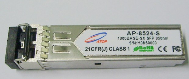 ![]() | SFP module AP-3124-L2 Description 1. Meet SFP Multi-Source Agreement(MSA) and SFF-8472 with duplex LC receptacle 2. Metal enclosure for lower EMI 3. Transmitter Center Wavelength 850nm,1310nm,1550nm 4. Receiver PIN or APD 5. Data Rate up to OC48 6. Soft TX_FAULT monitor 7. Soft RX_LOS monitor 8. Soft Tx_Disable control and monitor 9. With user writable EEPROM 10. Operating Temperature 0℃~+70 ℃ 11. RoHS compliant Applications 1. SONET/SDH 2. Fiber Channel 3. Ethernet | |||||
