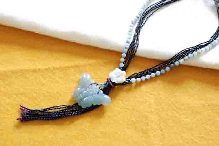 ![]() | fashion jade jewellery A438a This is a Chinese knot necklace with natural jade, necklace is interspersed some bead jade and three knot bats, bat means safety, satisfactory, blessing, best wishes, peaceful in China. Jade is a flower, flower means blossom and wealth in China. | |||||
