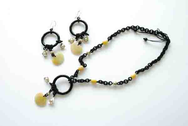 ![]() | fashion jade jewellery A903f This is a set of necklace and earring which we just released, consists of natural black agate rings and accents carved yellow jade, these carved yellow jade are called ”RuYi”, the symbol of good luck in China, and means satisfactory to you and your family. Sterling silver little fish hang around. You can see the necklace knot completely by handcraft, ring chain was embellished some small yellow jade, very especial. | |||||