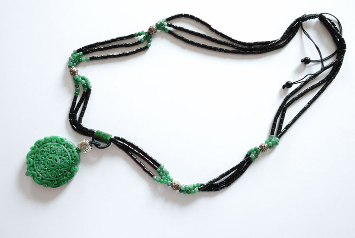 ![]() | fashion jade jewellery AG024 fashion jade jewellery, necklace is made of some natural black agates and jade. Pendent is natural jade with some dragons arould, and five bats in it, means it will bring you good luck and happiness. | |||||