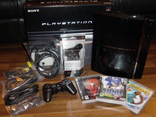 | Sony Playstation 3 6GB console with three games and extras New Sony Playstation 3 60GB console with three games and extras. Included accesories (Power cord, AV cables, USB remote cable and CAT 6 phone download cable). Also included is an extra Wireless SixAxis controller in original packaging, gold plated HDMI cable and fiber optic audio cable for HD gaming. Includes 3 games (Sonic the Hedgehog, Spiderman 3, and Surfs Up) Features Dimensions (WxDxH): 32.5 cm x 27.4 cm x 9.8 cm Expansion Slots Total: Memory Stick, SD Memory Card, CompactFlash Card Processor: Cell Broadband Engine Video Output: NVIDIA RSX Weight 5 kg Connections 4 x USB, 1 x network, 1 x HDMI output, 1 x PlayStation 3 AV output, 1 x SPDIF output ( TOS Link ) Unit price USD 528.00 The price is not include the shipping charge, export TAX and insurance. | ||||||