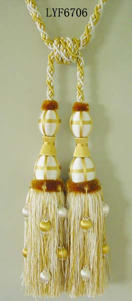 | Tassel and tieback LYF6706 Description: made of Rayon and other material, exquisite handwork, all colours are available Price Terms: FOB shanghai or ningbo ,CFR,CIF Payment Terms: T/T, L/C AT SIGHT Minimum Order: 500 Meters Inner Packing: cardboard plus pvc bag Delivery Lead Time: 30 days after 30% deposit | ||||||