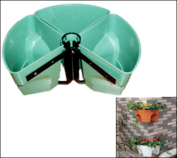 ![]() | Corner Planter SL-3518-A It is specially used in the corner for vertical virescence. If three flower pots are riveted by iron bracket in corner, it is very vertical effect while the plants are blooming. 1) Material: PP and metal 2) Product size: dia. 350 x H 180mm 3) Dimensions: PP 430*360*490mm 4) Metal dimensions: 34.5 x 34.5 x 25mm Packing: 20 sets/ctn (SL-3518 78 flower pots and 26 brackets) Conveyance: Qty/20' FCL: 5,512pcs | |||||