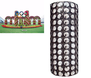![]() | flower post SL-Y100 The product is made up of a metal frame in the inner and plastic flower pot attached in the metal frame. The post can be grown in a variety of color flowers and bring a great of vision. It can be easily transported by knocked-down components.and is extremely maintenance friendly. Details of the products: 1) Material: iron frame and plastic flower pot 2) Product diameter: 1,100mm, height: 3,000mm 3) Purpose: suitable for outdoor landscaping 4) Packing:Metal frame and plastic flower pot packed separately | |||||