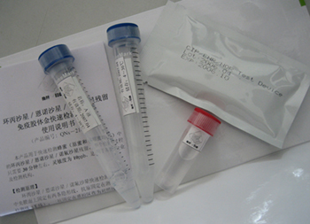 ![]() | Ciprofloxacin Test Kit QNs The food diagnostic rapid immuneassay test kits can detect the residues of Quinolones at the sensitivity of 2ppb to 25ppb. They can test the food samples, such as milk, egg, honey, feed, and tissue samples (eg. seafood,pork, beef, livstock, fish, shrimp). Need only about 5-30min,the result is eyeable through the colour change line. Easy to use and need NOT be freezed to store. They perform well as a screening method to control the food quality to keep foods safe. Package:40 tests per kit,sealed pouch. | |||||