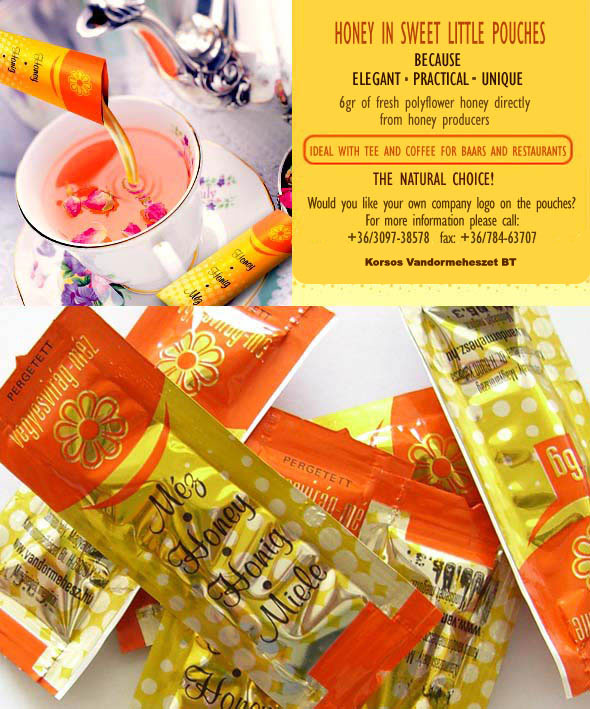 ![]() | Honey in pouches Honey in sweet little pouches. Ideal with coffee or tee for baars, restaurants, catering companies and food retailers/wholesalers. Login to contact us right away. | |||||