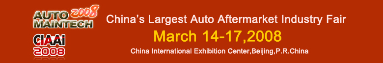 ![]() | Auto Maintech Expo 208 China International Trade Fair for Auto Maintenance Technology and Equipment, Automobile Spare Parts and Accessories, sponsored by China Auto Maintenance Equipment Industry Association, China Automotive Maintenance and Repair Trade Association, China International Exhibition Center Group Cooperation, organized by CIEC Exhibition Co., Ltd, is the largest automotive aftermarket industry fair around China with an expected space of 60,000sqm, will be held on March 14-17, 2008 at China International Exhibition Center in Beijing. For Auto Maintech 2007, we have over 722 exhibitors and 30141 visitors from over 34 countries and regions around the world. | |||||