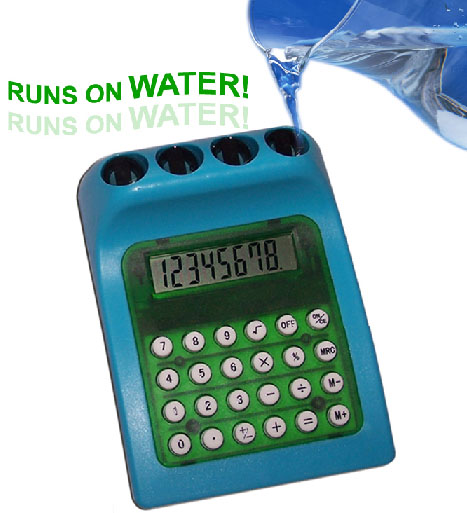 ![]() | Water power calculator ZC003D * Runs on water * once inpouring water it can used about 15 days * the life of calcultor is very logo * it can be as good promotion gift | |||||
