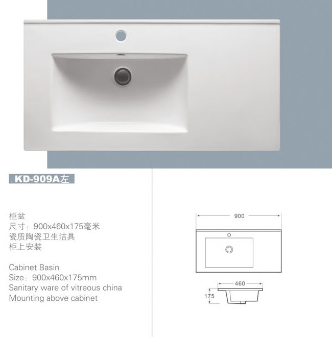 ![]() | Ceramic thin counter basin KD-906C Size: 600 (700/ 800/ 1000/ 1200) * 460 * 180 mm | |||||