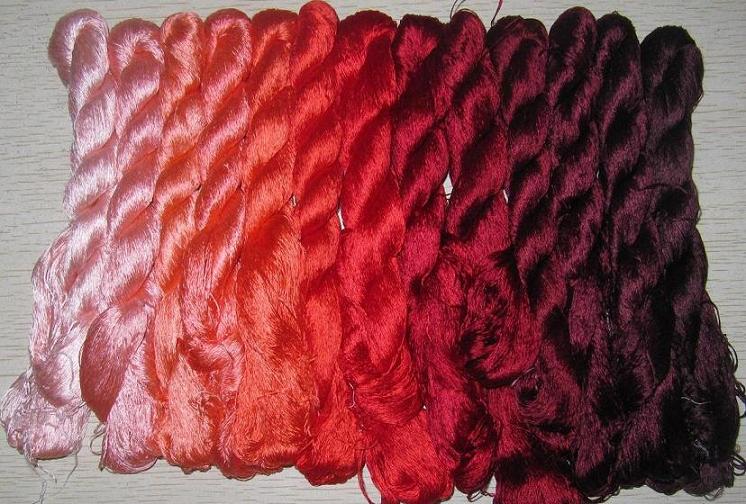 | Hand-dyed natural pure silk embroidery floss needlepoint threads High quality natural silk embroidery threads from China, 100% mulberry silk, hand-dyed. Each skein is approx 440 meters, we have up to 1000 colors of silk threads available. Suitable for hand embroidery, cross stitch, needlepoint and other handicraft work.