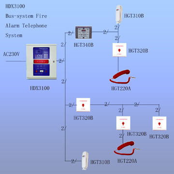 | Fire Telephone Alarm System HDX3100 Bus-system Fire Alarm Telephone System including: HDX3100 fire alarmtelephone main set; HGT310B bus-system table & wall telephone extension; HGT320B telephone plug-hole socket; HGT340B telephone control module; HGT220A plug-hole telephone extension. Theperson on the spot can communicate with central control room by using thissystem when emergent event happens. This system also can be used fordispatching and directing spot staff on emergent messages which was get fromother systems | ||||||