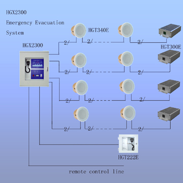 Emergency EvacuationSystem is a broadcast system that report fire emergency message in reaction toan emergency event within a building to evacuate people efficiently. The systemcomprises main set, remote microphone and special speaker. It provides 2pre-recorded messages, 1-channel local microphone, 1-channel remote microphoneand 4-channel broadcast area output, both local and remote control. It iscapable of recognizing open/short circuit of local microphone, remote microphoneand broadcast area, send audible and visible alert to report fault. The systemis suitable for ordinary buildings and public locations.