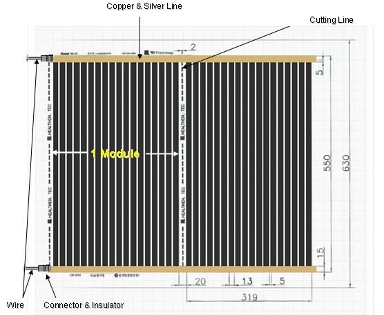 ![]() | CNT Floor Heating Film What is CNT Heating Film? CNT heating film is a heating system which is installed under the floor to provide primary heat. The extraordinary properties of the applied carbon nanotube enable more efficient and reliable heating from floor to ceiling. What is Special? 1. Economical Saving energy consumption up to 30% compared with conventional heating systems. Easy and quick installation saves time and money. Able to select desired temperature level and Partial application. 2. Healthful Radiating Far Infrared Rays and anions Clean, quite and odorless No Sick House Syndrome, No Electromagnetic Waves 3. Easy & Convenient Cutting the film to size right at the site and installing it quickly. Thin and light material for wide application. Easy maintenance and management. 4. Safe No corrosion and reduced risk of disconnection. (even in case of partial disconnection, heating is possible) Product Specification Film Size : 630mm X 100m X 100µm 1 Module Size : 630mm X 340mm Target Temperature : ~ 60 celsius Power Consumption : 500 ~ 600W / 3.3m2 Voltage : 220V, 60Hz Application Studio apartment Apartment Dormitory Hotel, Condominium Café, Restaurant Hospital, Nursing home Temple, Church | |||||