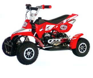 ![]() | QUAD QUAD 49Q-04 engine type:2-strokeaircooled 49cc producing 3.4hp(11,000rpm) pre-mix fuel: 25:1 35-40mph maxspeed hand start-up all alloy wheels pneumatic racing tyres dual front and rear shock absorber automatic clutch, chain drive single rear disc brake steel tubular frame overall length:1000mm width:590mm height(to handlebars):630mm seatheight:450mm packingsize:98x58x57cm maxpayload:95kg container:96pcs/20ft,160pcs/40ft,192pcs/40HQ | |||||