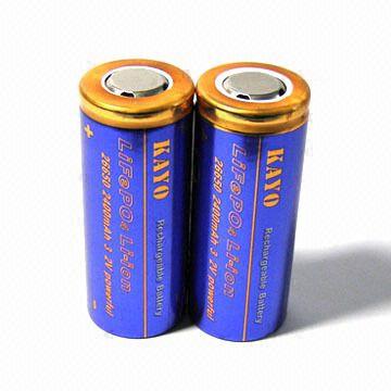![]() | LiFePO4 battery ICR26650 Nominal voltage: 3.2V Nominal capacity: 2,400mAh Discharge cut-off: 2.0V Maximum charge voltage: 3.6V Maximum charge current: 12A Life cycle: 2,000 times PCB and battery pack available Environmental friendly Used in power tools, lights, and toys | |||||
