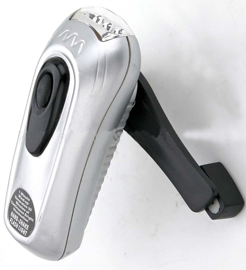 ![]() | Dynamo Flashlight EV-DF01 Features: 1) No batteries needed, cranking for power generation 2) High current: recharging 1 minute providing 1.5 hours lighting for 1 LED or 30 minutes for 3 LEDs 3) Ideal for: home use, vehicles, boats, camping, emergency kits 4) Energy saving and no pollution 5) Suitable for household, outdoor activities, tourism 6) 1 / 3 LEDs 7) Rainproof 8) Built-in battery 9) Wind up recharge 10) Patented product 11) Ergonomic design 12) Environmentally friendly 13) Size: 13.8 x 5.5 x 5cm 14) Weight: 170g 15) Power: 1.5W 16) Material: ABS 17) Rechargeable Ni-H: 3.6V 80mAH 18) Operating speed: 120 circles/min 19) Output power: 1W | |||||